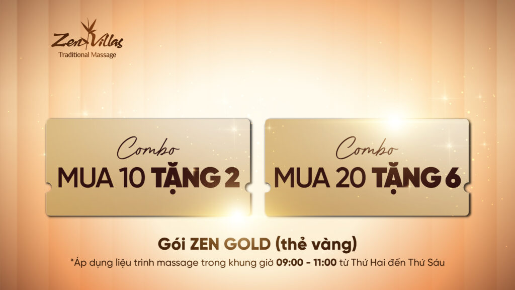 ✨ Gói Zen Gold (Thẻ Vàng – Áp dụng với liệu trình massage trong khung giờ 09:00 – 11:00 từ Thứ Hai đến Thứ Sáu)